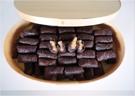 「かながわの名産100選」に選ばれた「ほととぎす巻」です。落花生の粉に砂糖、辛子粉、水飴、ごまなどを混ぜ合わせたものをしその葉で一個一個手巻きして製造されています。食べた瞬間口に広がる落花生の旨みと甘み、しその香り、最後に広がる辛子の辛さが後を引きます。お酒のおつまみ、お茶うけに。 包装済みのお箱でのお届けとなりますので、ギフトにも最適です。