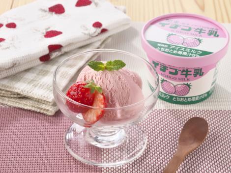 【イチゴ牛乳(アイスミルク)】 牛乳(国内製造)、乳飲料(生乳、砂糖混合異性化液糖、脱脂粉乳、加糖脱脂練乳、いちご果汁)、水あめ、砂糖、植物油脂、いちご果汁、脱脂粉乳、加糖脱脂練乳、バター、クリーム、デキストリン / 安定剤(増粘多糖類)、乳化剤、紅麹色素、香料、酸味料、(一部に乳成分を含む)