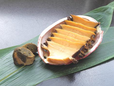 一粒まるごと使用しています。食べ応えのある食感とそれに負けない美味しさが自慢の一品。肝を残して加工しているので、磯の香が感じられます。薄くスライスして醤油ベースの調味液をかけてお召し上がり下さい。酒の肴として絶品です。