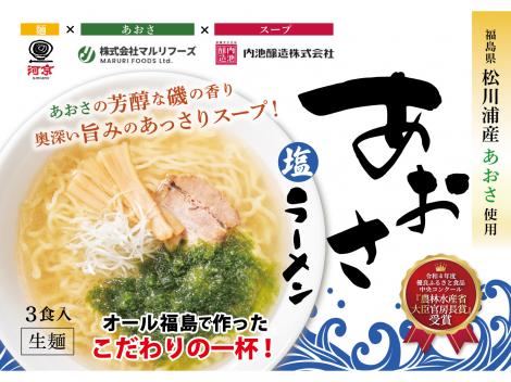浜通り相馬市松川浦からは、香り高く食感の良いあおさを、中通り福島市からは創業160年の老舗醸造所が作った、あおさと相性抜群の塩スープを、会津喜多方市からは、モチモチ食感の熟成多加水麺を。