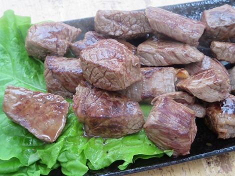 ワインを作る過程で出る葡萄の絞り粕を発酵させた飼料を使い、豊かな自然の中で健康に育てた甲州ワインビーフ。香り高く旨味のある美味しい赤身肉が特徴です。 甲州ワインビーフの中でも一番赤身肉を堪能できるモモの部位をサイコロステーキでご用意いたしました。側面は強火でカリッと中はサッと火が通った状態がおすすめです。 しっかりと肉に旨味がありますのでどんなステーキソースでも美味しく召し上がれます。また、塩コショウやわさびなどでいただくと肉の旨味をダイレクトにお楽しみいただけます。