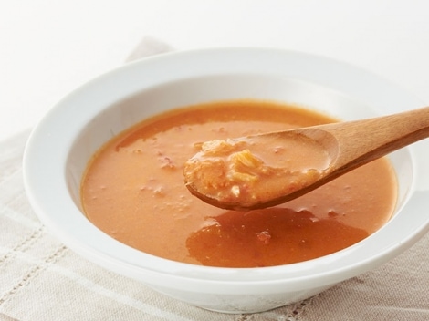 クラッシュトマト(イタリア製造)、オオエンコウガニ(まるずわいがに(ナミビア))、加工乳(乳成分を含む)、にんじん、ソテードオニオン(大豆を含む)、生クリーム、セロリ、バター、小麦粉、白ワイン、トマトペースト、オリーブオイル、甘えび粉末、はちみつ、食塩、ブイヨン(ゼラチンを含む)、乾燥にんにく