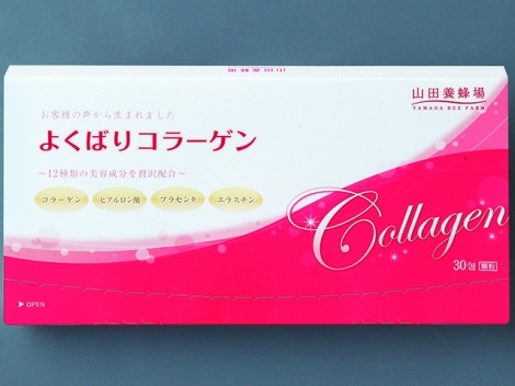 コラーゲンペプチド,ぶどう糖,有胞子性乳酸菌,プラセンタエキス,エラスチンペプチド,アセロラ末,リンゴポリフェノール,バラ花びらエキス,ツバキ種子エキス,セラミド含有米抽出物,ビタミンC,ヒアルロン酸,ヘマトコッカス藻色素(アスタキサンチン含有),甘味料(スクラロース),(原材料の一部にゼラチン,豚,リンゴを含む)
