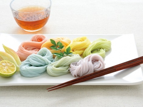 素麺は、三輪素麺・播州素麺・小豆島素麺・島原素麺などいろいろありますが、奈良県の三輪地方が発祥の地とされており、他の地方に伝え広まりました。 三輪素麺の歴史は約1200年続いています。 独特のコシと、のど越しが自慢の手延べ素麺を虹に見立てた彩り豊かな七色の素麺に仕上げ、昔ながらの線香巻きで一束ずつ丁寧に包装いたしました。 食卓を彩る、美しく優しい三輪の味わいを、どうぞお楽しみください。