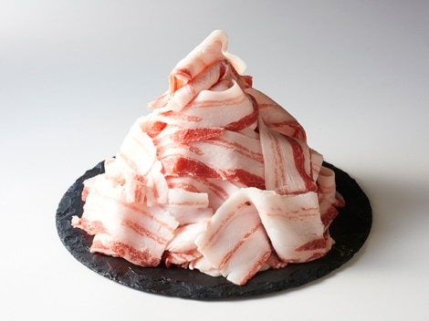 スペインの高級食材である【イベリコ豚】を使用したバラ肉。 イベリコ豚の肉の中でも一番味がわかるばら肉のしゃぶしゃぶの薄さを1.8mmにスライス。イベリコ豚のしゃぶしゃぶの研究の中で一番旨味が伝わる薄さを追求しました。 とりやすいように、途中でシートを引いておりますので、使う分だけ取り出せます。
