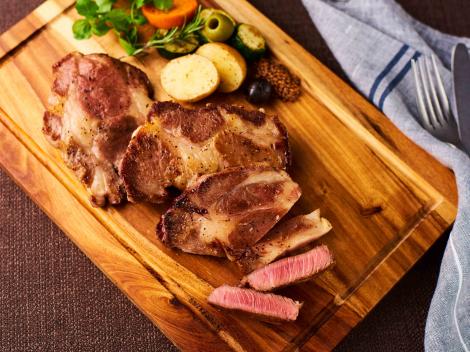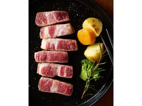 スペインの高級食材であるイベリコ豚を使用した肩ロースステーキです。肉の一番旨味の凝縮している部位をステーキにしました。香り高いトリュフ塩をかけてお召し上がりください。