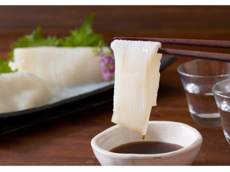 【当店自慢の函館産いかそうめんに、専用の特製たれをセットにしました】 函館産の新鮮なスルメイカを使ったいかそうめんです。 いかの街「函館の味」を、みなさまの食卓へお届けします。一枚ずつ丁寧にパッケージングしていますので、ご利用の分だけ解凍しお召し上がり下さい。 ・鮮度の良いスルメイカ使用 ・無添加・無漂白 ・超急速冷凍(トンネルフリーザー使用)
