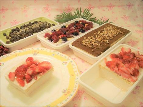 ■ティラミス:生乳(国産)、クリームチーズ、グラニュー糖、カステラ(卵・砂糖、その他)、生クリーム、脱脂粉乳、ぶどう糖、卵黄、アーモンド、ラム酒、ココアパウダー/安定剤(増粘多糖類)、香料(一部に乳成分、卵、小麦を含む)■ベリーベリータルト :生乳(国産)、グラニュー糖、生クリーム、グロゼイユ(赤すぐり)、木いちご、タルト(小麦粉、バター、その他)、ブルーベリー、いちご、脱脂粉乳、ぶどう糖、ビーツ、リキュール/安定剤(増粘多糖類)、酸味料、着色料(カラメル)(一部に乳成分、小麦、卵を含む)■ミルフィーユ:生乳(国産)、グラニュー糖、いちごビューレ(いちご、砂糖)、ミルフィーユ(小麦、マーガリン)、生クリーム、いちご、脱脂粉乳、ぶどう糖、卵黄、ビーツ/安定剤(増粘多糖類)、(一部に乳成分、小麦、卵、大豆を含む)■抹茶あずき:生乳(国産)、蜜漬け豆(大納言小豆、砂糖)、グラニュー糖、生クリーム、脱脂粉乳、ぶどう糖、茶(抹茶)、きな粉/安定剤(増粘多糖類)、甘味料(ソルビトール)(一部に乳成分、大豆を含む)