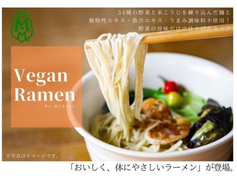 ■ヴィーガン味噌ラーメン 麺〔小麦粉(国内製造)、野菜ペースト(グリーンリーフ、小松菜、ケール、米麹、その他)、食塩/かんすい〕、スープ〔米みそ(大豆、米、食塩)、しょうゆ、砂糖、ごま、エキス(野菜、酵母)、豆板醤、食塩、にんにく、しょうが、香辛料/酒精〕、(一部に小麦・大豆・りんご・ごまを含む)