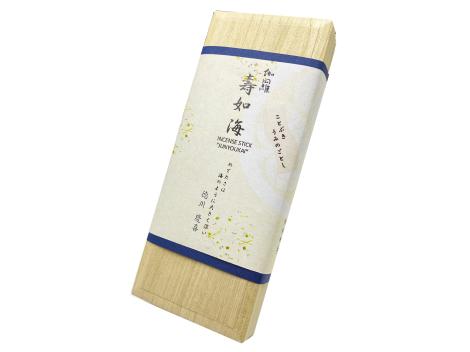 古き良き時代のお香を現代に再現するため、 正直に本物のみにこだわってつくりあげた「天然原料100%」のお香です。 丁寧に熟成された高価で大変貴重な伽羅の幽玄な香りのお香です。 本物だけが醸しだす贅沢で優雅な香りをお楽しみください。 寿如海 (ことぶきうみのごとし) 江戸幕府最後の将軍、徳川慶喜のことば 弟昭武の娘が結婚する際、その祝いの品に刻んだことば。 「めでたさは海のように大きく深い」 昭武の心情を詠んだといわれています。