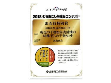 地元湯浅名産の湯浅醤油を使った自家製のタレで味醂干しを製造しています。 2018年度全国商工会連合会主催のむらおこし特産品コンテストで審査員特別賞を受賞させて頂きました。