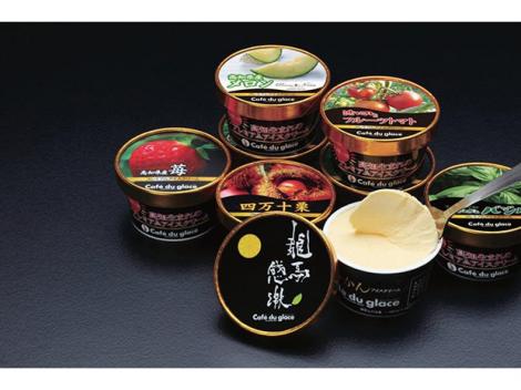 「上質な味わいの本物のアイスクリームを作りたい!」グラシエが開発の傍ら、全国各地のアイスクリームを食べ歩き、様々な配合を研究。 作っては試食、改善、試食、改善…。そしてついには、フランス・ヨーロッパへ留学。 ル・コルドン・ブルーパリ校や、ホテルリッツで研修を受け、自分の舌で感じた美味しさで今のCafe du glace の味にたどり着きました。 ご当地の美味しいアイスクリームを伝えたいとの思いで高知の牛乳、高知の卵を使い、地域資源「野菜・果物」は全て高知県産。 生産現場へ直接出向いて確認した厳選素材を使用し手作りしています。 高知県産苺・池トマト・バジル・高知県産ゆず・新高梨・四万十栗・龍馬感激みかん・土佐マンゴー・文旦・メロンの10種類です! 大切な方への贈り物に、あなたご自身へのご褒美に、是非一度お試しください。