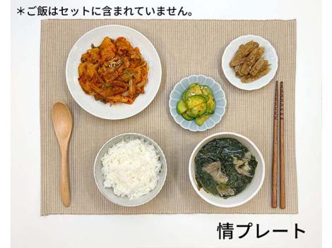 ■情プレート:豚肉(メキシコ、チリ)、玉ねぎ、長ねぎ、サラダ油(食用大豆油)、発酵調味料(米、水あめ、アルコール、食塩、米こうじ)、唐辛子、コチュジャン(水あめ、米、唐辛子粉、食塩、たまねぎ、大豆、にんにく、大豆粉、もち米、米粉、麹)、乾わかめ(湯通し塩蔵わかめ)、牛肉、醤油加工品(脱脂大豆、食塩、果糖ぶどう糖液糖、小麦、酵母抽出物)、おろしにんにく、食塩(海水塩)、ごぼう、ズッキーニ、小ねぎ、エビ塩辛(あみ、食塩)、胡麻、食用ごま油、三温糖(原料糖)、牛肉だしの素(混合薬味ミックス(食塩、小麦でん粉、たまねぎ粉、にんにく粉、牛骨エキス、その他)、砂糖、しょうゆ、牛脂、小麦でん粉、ぶどう糖、デキストリン、たん白加水分解物、牛肉風味エキス、胡椒ミックス、にんにくエキス、にんにくこまねぎ混合粉)、ジンハン梅エキス(砂糖、液状果糖、りんご濃縮液、うめ濃縮液)、コーンスターチ、お酢/調味料(アミノ酸等)、調味料(L-グルタミン酸ナトリウム)、pH調整剤、増粘剤(キサンタンガム)、クエン酸、カラメル色素、酒精、酸味料、香料、アルコール、甘味料(酵素処理ステビア)、保存料(パラオキシ安息香酸エチル)、着色料(カラメル)、甘味料(ステビア)、(一部に小麦・乳成分・牛肉・大豆・ごま・えび・りんごを含む)