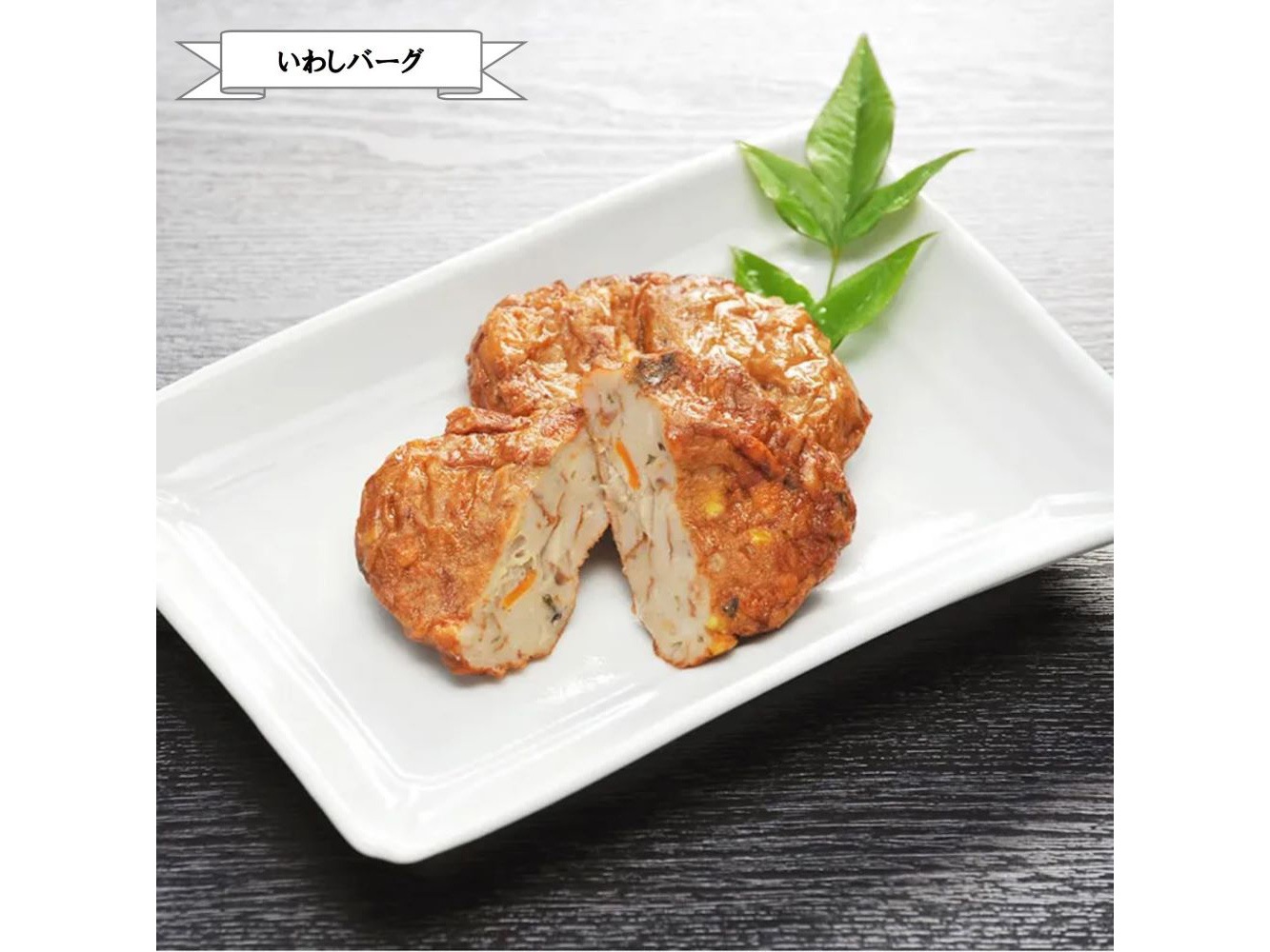 ■いわしバーグ:魚肉(いわし(九州産)、あじ(長崎県)、玉ねぎ、人参、ごぼう、コーン、馬鈴薯でん粉、食塩、砂糖、卵、菜種油/調味料(アミノ酸等)