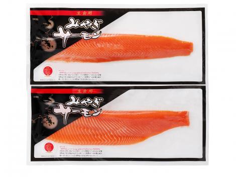 「みやぎサーモン」は宮城県で養殖された銀鮭を水揚げの際に「活締め」「神経締め」を施した高品質・高鮮度のサケです。 ほんのり甘みを感じ、身に艶とハリがあるのが特徴です。 刺身用として骨と皮を取ってあるので、お好みの厚さに切り、わさび醤油でお召し上がりください。 また、サラダを添えたマリネ、ホイル焼きなどの焼き物、サーモンレアカツとしても安心してお召し上がりいただけます。 おおよそ、1本から15~20切前後お楽しみいただけます。