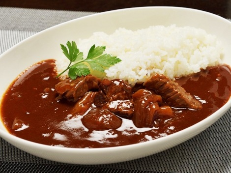 ビーフブイヨン(国内製造)、ソテーオニオン、牛肉(岐阜県産「飛騨牛」)、トマトケチャップ、ハヤシルウ、デミグラスソース、にんにくペースト、食塩/増粘剤(加工デンプン)、カラメル色素、調味料(アミノ酸等)、酸味料、香料、(一部に小麦・乳成分・牛肉・大豆・鶏肉・豚肉・りんごを含む)