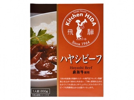 飛騨牛ステーキ専門店「キッチン飛騨」のハヤシビーフです。 肉厚な飛騨牛と淡路島玉葱を具材に、昔ながらの味わいのハヤシビーフに仕上げました。 キッチン飛騨特製の濃厚なデミグラスソースが美味しさの決め手。 まろやかな味わいに酸味を効かせた大人のためのハヤシビーフです。