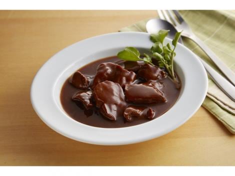 デミグラスソース(国内製造(野菜ベース、トマトケチャップ、牛脂、その他))、牛たん、発酵調味液、酵母エキス/増粘剤(加工でん粉、カラギナン)、カラメル色素、調味料(アミノ酸等)、乳化剤、(一部に小麦・乳成分・牛肉・鶏肉を含む)
