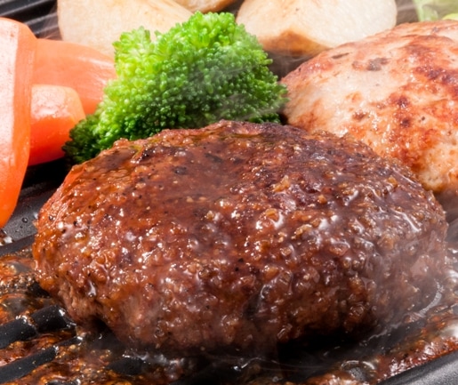 黒毛和牛の血統ゆえの脂の旨さと、ホルスタイン血統の野性味ある赤身肉の旨さを合わせ持つ、素晴らしい味わいの肉質を存分に堪能できる、肉汁あふれるハンバーグに仕上げております。