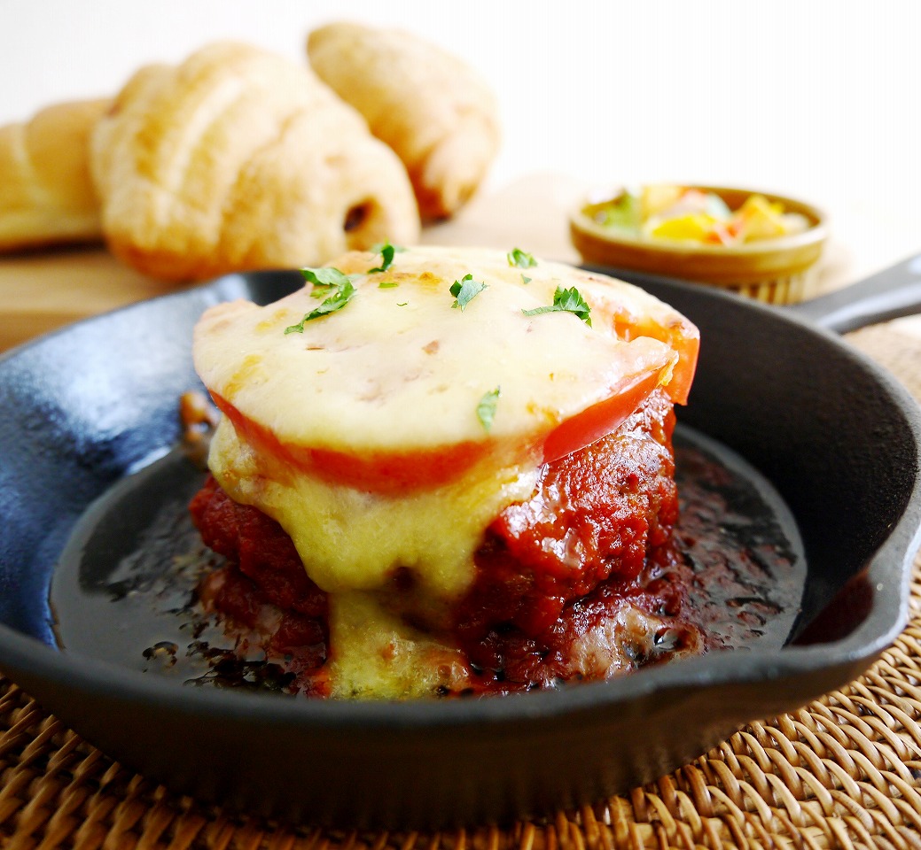 蔵王牛の牛肉を100%贅沢に使用した本格的なハンバーグを特製トマトソースで煮込み丁寧に仕上げました。