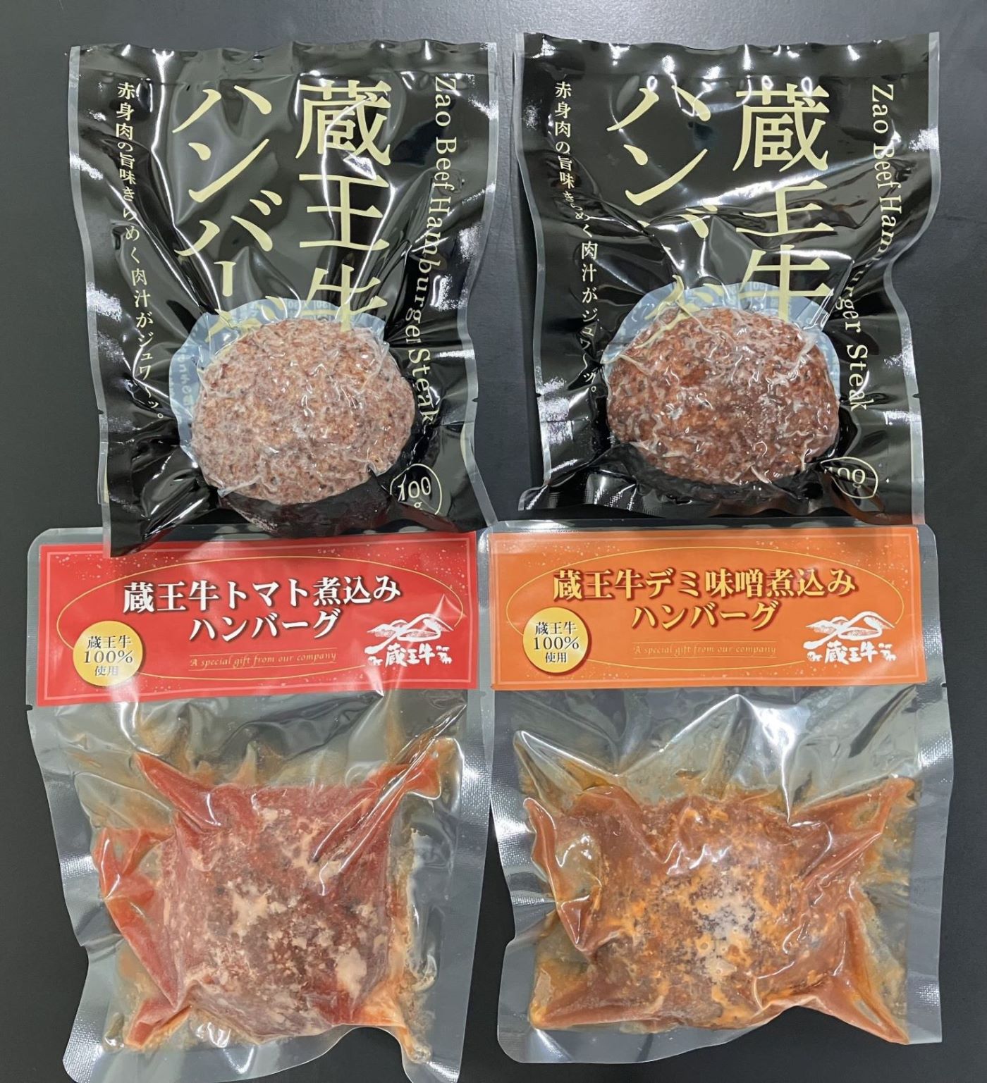 蔵王牛3種のハンバーグ食べ比べ (ハンバーグ2個・味噌煮込み1個・トマト煮込み1個)