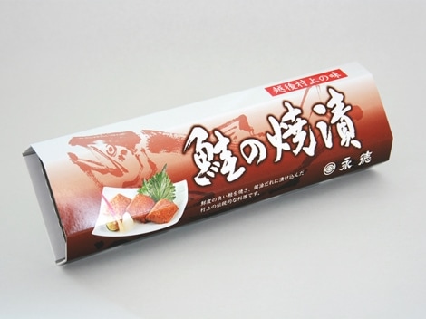 白焼きにした鮭の切身を独自の醤油だれに漬け込んだ伝統的な鮭料理と、上級昆布でアラではなく秋鮭の身の部分を巻き煮込んだ鮭巻昆布のセットになります。