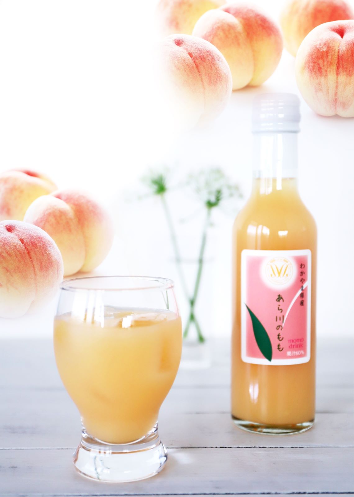 また、贅沢に60%の桃果汁を使用しておりますので、桃の実をそのまま食べたような果実感、ほどよい甘さと香り、すっきりとした後味で上品な余韻をお楽しみいただけます。